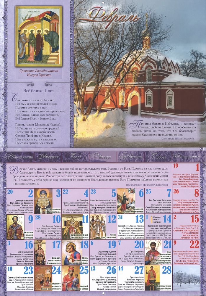 Этот календарь станет отличным дополнением для домашнего или офисного интерьера, сочетая в себе функциональность и духовную значимость. Удобный формат позволит легко отслеживать важные даты православного календаря.