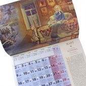 Детский православный перекидной календарь с иллюстрациями Наталии Климовой, посвященный жизнеописанию и чудесам святых. С картинами и краткими выдержками из житий известных православных святых.