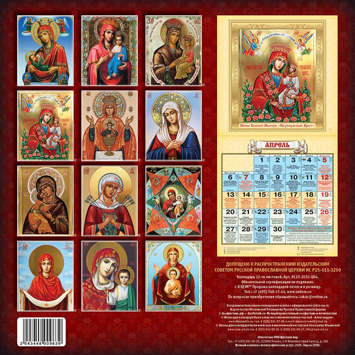 Календарь перекидной на скрепке на 2026 год «Чудотворные иконы. Владимирская»