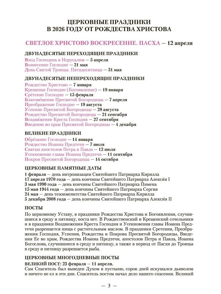 Православный календарь на 2026 год с Ветхозаветными, Евангельскими и Апостольскими чтениями, паремиями, тропарями и кондаками на каждый день — это издание, которое поможет быть в курсе всех событий богослужебной жизни Русской Православной Церкви.