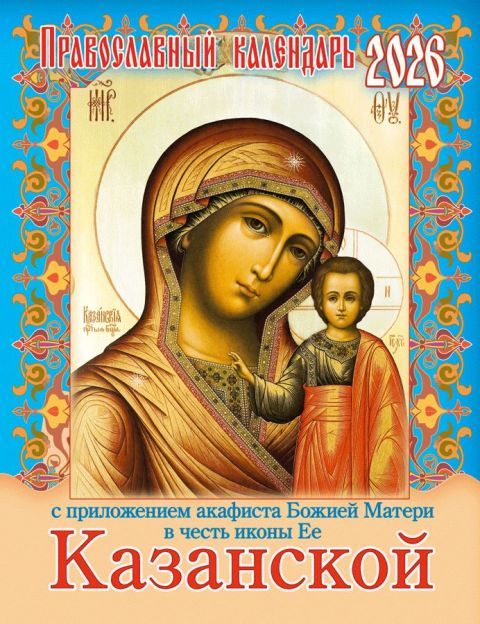 Православный церковный календарь на 2026 год с приложением, в котором представлен акафист, читаемый перед Казанской иконой Божией Матери