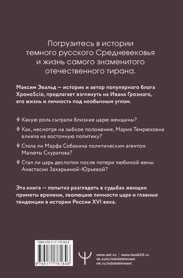 Иван Грозный вошел в историю как царь-тиран, а его жены — как безгласные тени, исчезающие в летописях одной строкой. Они становились жертвами его подозрительности и жестокости. Эта книга — попытка разглядеть за строками древних текстов живых женщин: юных, напуганных, обреченных. Их краткие жизни — трагические эпизоды, отражение эпохи, где даже царская невеста была лишь разменной монетой в династических играх. И тем не менее, брак с каждой из них повлиял и на личность царя, и на историю государства.
