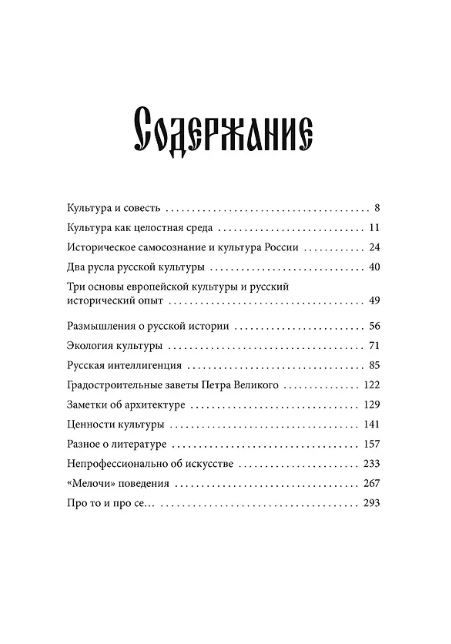 Автор пишет о литературе и языке, живописи и зодчестве, национальном характере русских — и о культуре как "цельной среде", из которой нельзя изъять одну часть ,не разрушив целого. Но это не холодная игра эрудиции, а размышление о добре и зле, личности и толпе, свободе в эпоху жестокости и бескорыстии совести — мысль, ведомая глубоким нравственным чувством.