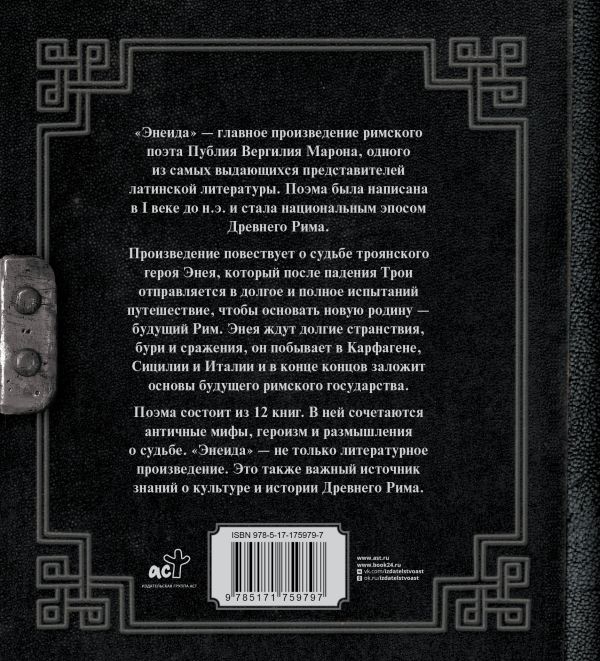 Поэма состоит из 12 книг. В ней сочетаются античные мифы, героизм и размышления о судьбе. "Энеида" - не только литературное произведение. Это также важный источник знаний о культуре и истории Древнего Рима.
