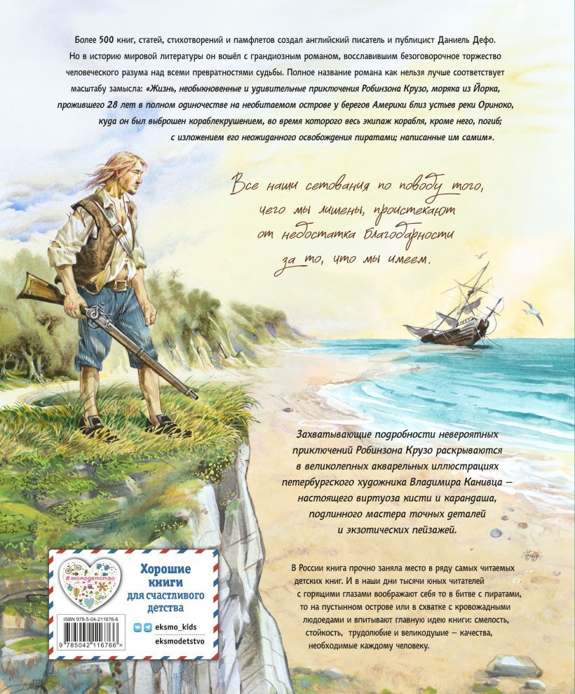 Роскошные виды тропического острова, старинные парусники, идиллические картины мирного бытия и жестокие схватки с каннибалами и пиратами встают перед нашими глазами благодаря ярким и детальным иллюстрациям известного петербургского художника Владимира Канивца.