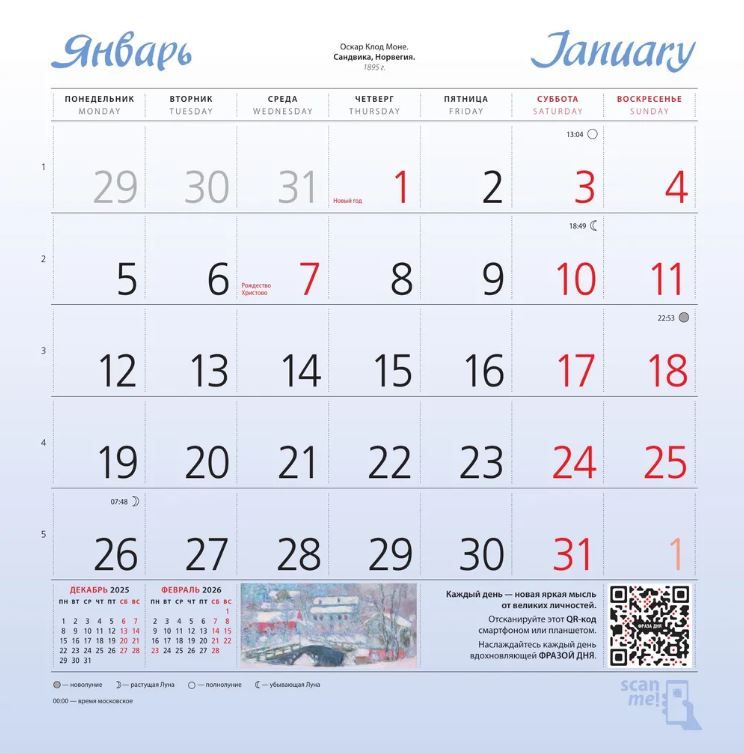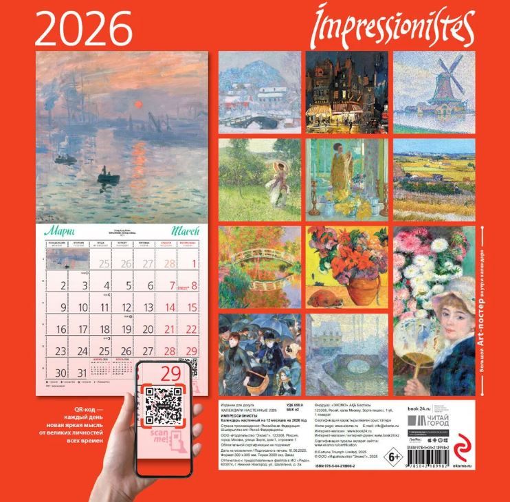 Практичный и эстетичный, этот календарь каждый месяц будет радовать вас. Прекрасные картины органично дополнят любой интерьер и помогут планировать время. В этом календаре представлены шедевры известных импрессионистов.