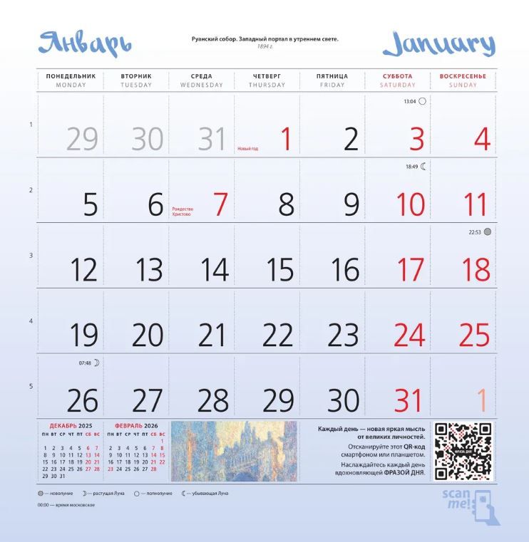 Практичный и эстетичный, этот календарь каждый месяц будет радовать вас. Прекрасные картины органично дополнят любой интерьер и помогут планировать время.