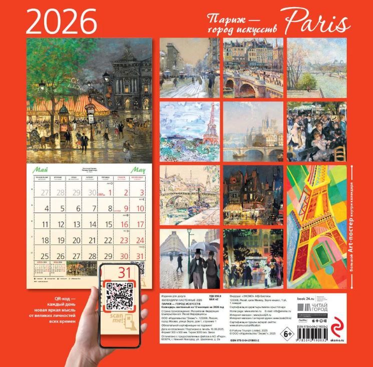 Тщательно подобранные иллюстрации, напечатанные на глянцевой бумаге высочайшего качества, станут настоящим украшением дома, а в календарной сетке найдется место для ваших планов: большие клетки позволят делать записи и организовать свой год! В календаре также отмечены все государственные праздники.