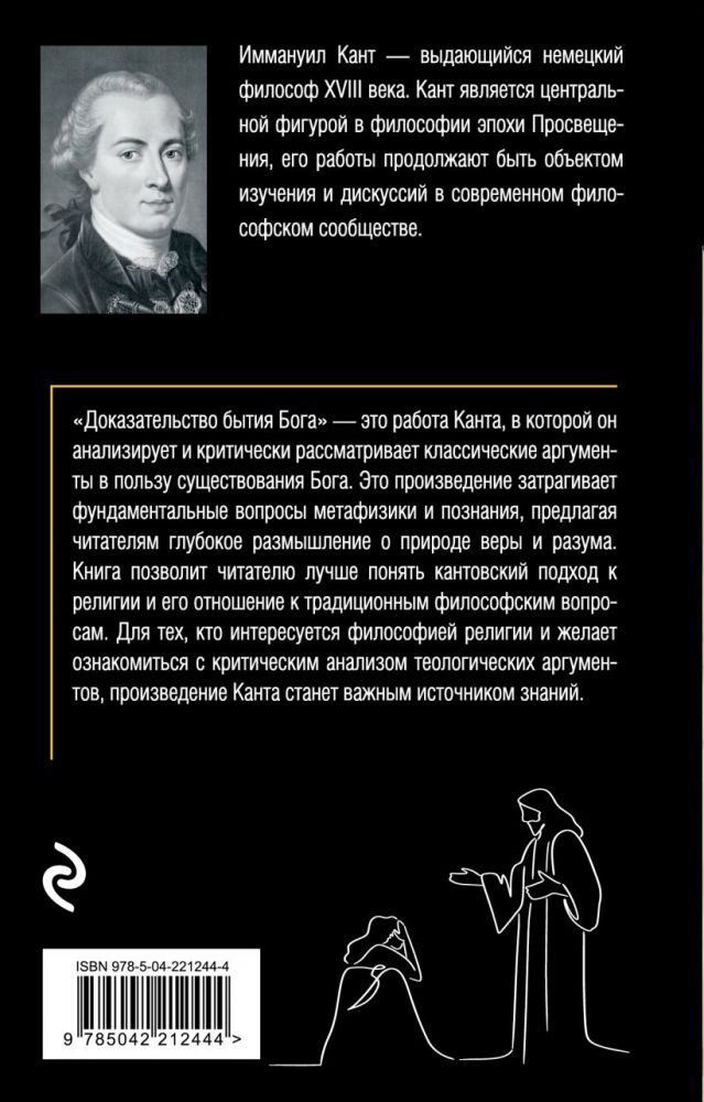 Иммануил Кант — один из величайших философов эпохи Просвещения, чье влияние на философию и науку до сих пор остается неисчерпаемым. В своей работе «Доказательство бытия Бога» Кант исследует глубочайшие вопросы теологии и метафизики, предлагая критический взгляд на традиционные доводы о существовании высшего разума. Эта книга открывает уникальную возможность для читателей погрузиться в анализ моральных, рациональных и философских аспектов веры и разумности.