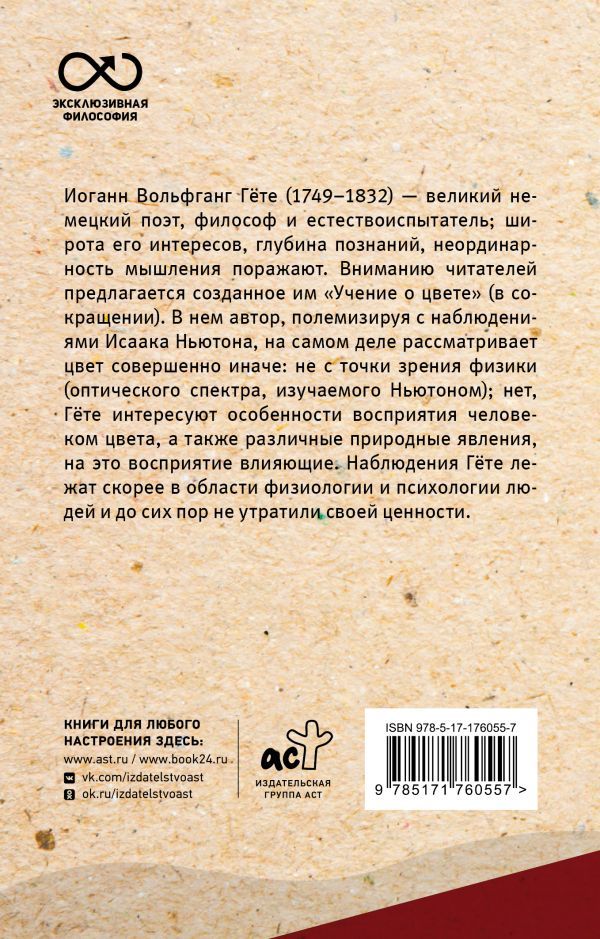 Иоганн Вольфганг Гёте (1749–1832) — великий немецкий поэт, философ и естествоиспытатель; широта его интересов, глубина познаний, неординарность мышления поражают. Вниманию читателей предлагается созданное им "Учение о цвете" (в сокращении). В нем автор, полемизируя с наблюдениями Исаака Ньютона, на самом деле рассматривает цвет совершенно иначе: не с точки зрения физики (оптического спектра, изучаемого Ньютоном); нет, Гёте интересуют особенности восприятия человеком цвета, а также различные природные явления, на это восприятие влияющие. Наблюдения Гёте лежат скорее в области физиологии и психологии людей и до сих пор не утратили своей ценности.