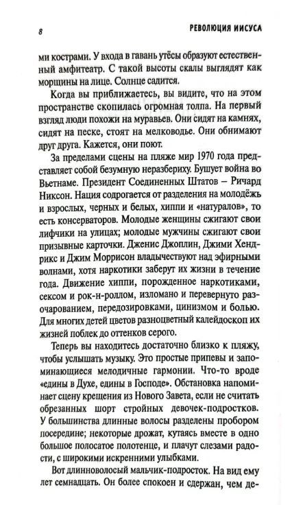 Хиппи, которые крестились в Тихом океан во время летнего заката 1970 года, не знали, что они участвовали в духовном пробуждении. Они даже не знали, что такое духовное пробуждение. Они не были знакомы с такими терминами из христианского словаря, как "возрождение", "спасение" или "освящение". Но благодаря группе Beatles, Джиму Моррисону и другим иконам контркультуры того времени хиппи знали такое слово, как "революция". Они были частью молодежной культуры, которая восстала против того, что они называли "истеблишментом", господствующими ценностями мейнстрима - конформизмом и крысиными бегами за материальным успехом и достижениями. Они были куда сильнее заинтересованы в достижении более высоких уровней сознания с помощью наркотиков, ритмичной музыки и наслаждений от сексуальных приключений, не обремененных узами брака. Они были предназначены для планеты, цветов, и общества, в котором все друг с другом нормально ладят. Эта молодежная революция была в самом разгаре, когда поднялась более глубокая, мощная и радикальная волна. Она называлась Революцией Иисуса или Движением Иисуса. Она росла среди молодежи -поколения бэби-бумеров - в США с конца 1960-х до начала 1970-х. Это было самое крупное и заметное движение Святого Духа в Соединенных Штатах со времен знаменитых пробуждений девятнадцатого века. Общенациональные журналы писали красочные очерки об этом массовом духовном феномене, точно так же, как и газеты вроде "Нью-Йорк Таймс".