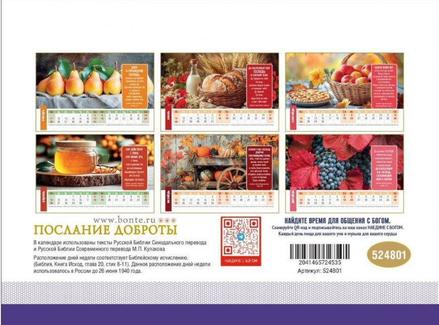 Календарь "Божьи благословения" на 2026 год наполнит каждый день духовной мудростью и светлыми мыслями. Библейские цитаты на страницах календаря подарят вдохновение и укрепят веру в течение всего года. Станет прекрасным подарком для тех, кто ценит духовные ценности.