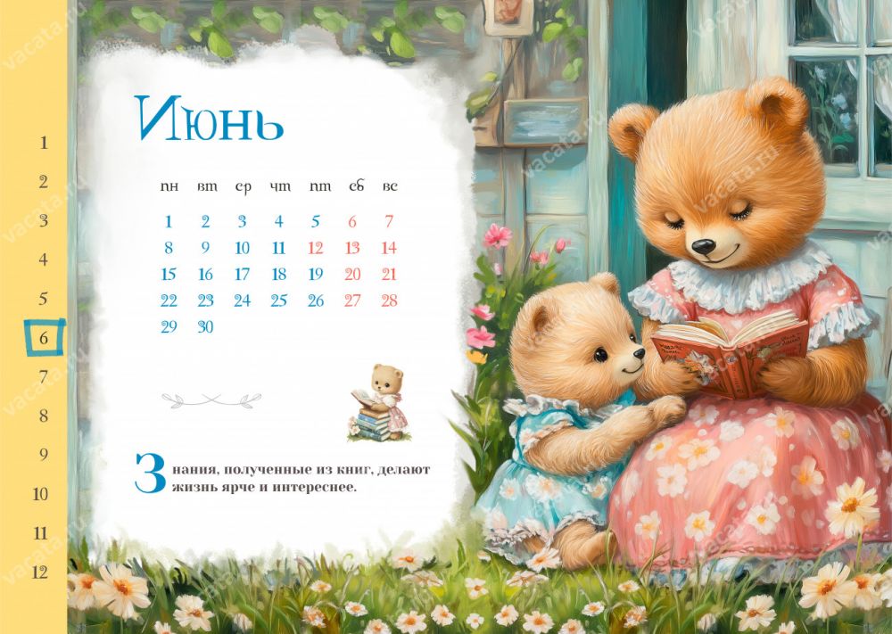 Календарь «Мои первые книги» сделан с любовью и хорошим вкусом. Он проиллюстрирован фантазийными изображениями животных — мам и детенышей, читающих книги. Это необычайно милые и трогательные изображения проявлений материнской любви и заботы с цитатами о о пользе чтения книг ненавязчиво будут прививать вашему ребенку любовь к чтению. Вы можете любоваться этими чудесными изображениями круглый год, попутно планируя свои дела. Такой календарь может детям, которые любят зверей.