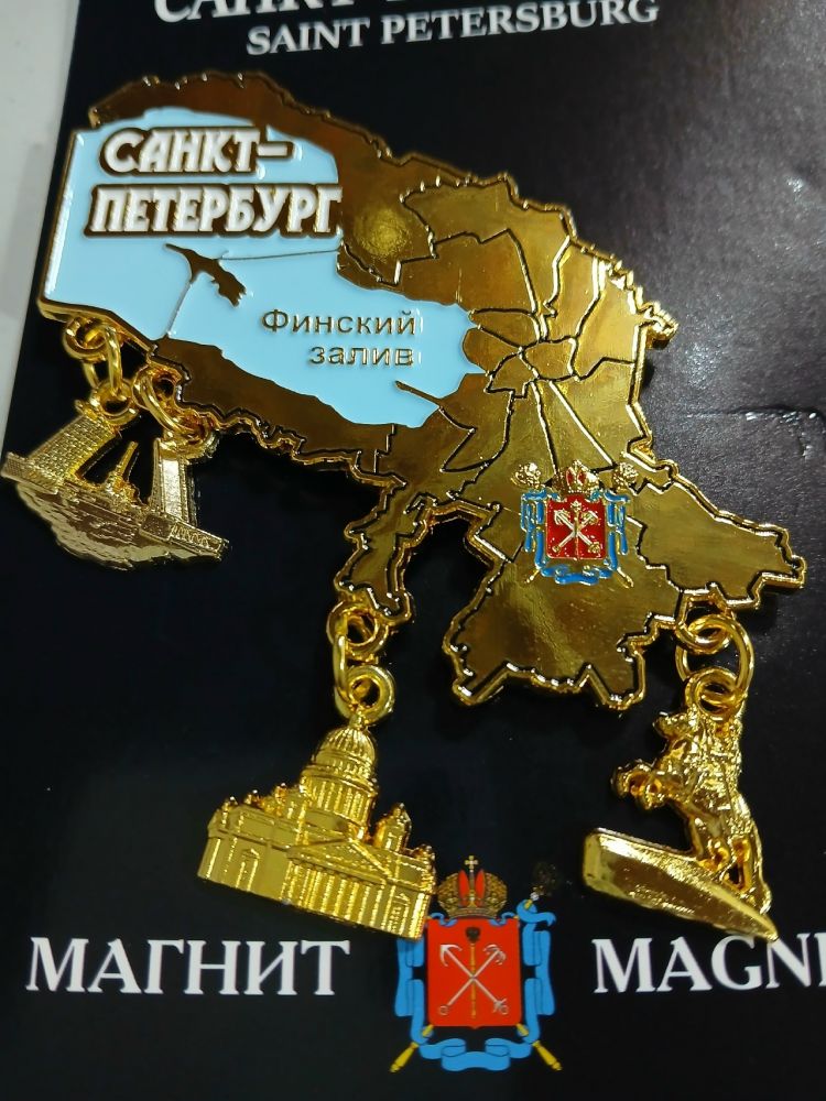 Магнит металлический объемный с подвесками: «Санкт-Петербург»