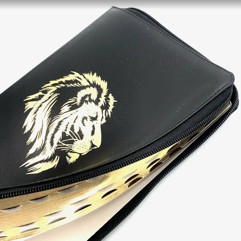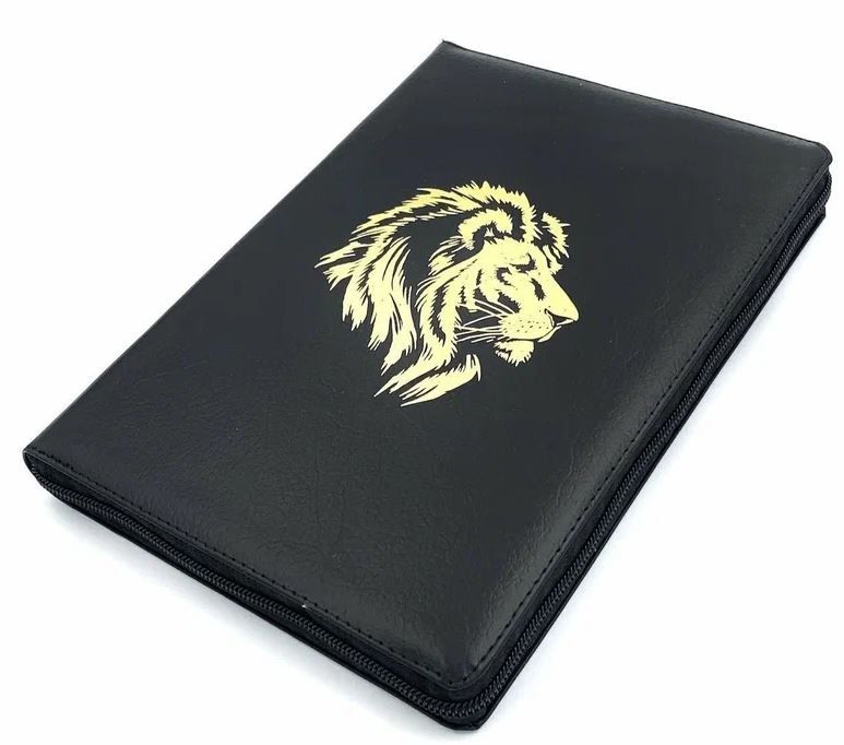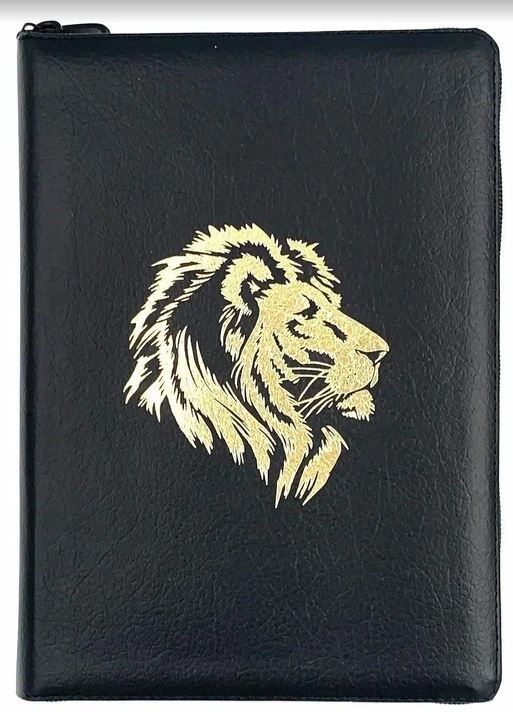Дизайн обложки "Золотой лев", переплет кожа, на молнии, индексы.