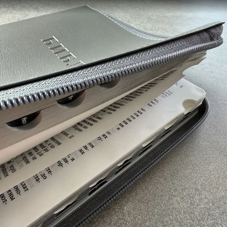Главная / Книги / Библии. Библейские словари, справочники / Библии канонические / Библия каноническая 076zti (серая,Библия с вензелем, молния, указатели) 25076-23