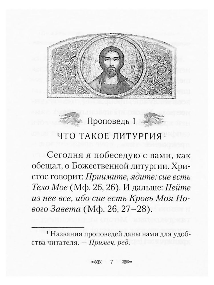 Проповеди о Божественной литургии, представляемые вниманию благочестивого читателя, были произнесены сщмч. Серафимом (Звездинским) в Серафимо-Дивеевском монастыре на протяжении 1926 г., последнего перед закрытием монастыря. У свт. Серафима был дар трогательно и вдохновенно совершать Литургию, которую он служил ежедневно, и на свободе, и в ссылке. «Любите Литургию Божественную!» «Считайте потерянным день, когда вы не будете слышать Литургию!» - этот пламенный призыв священномученика мы слышим из его уст и сегодня.