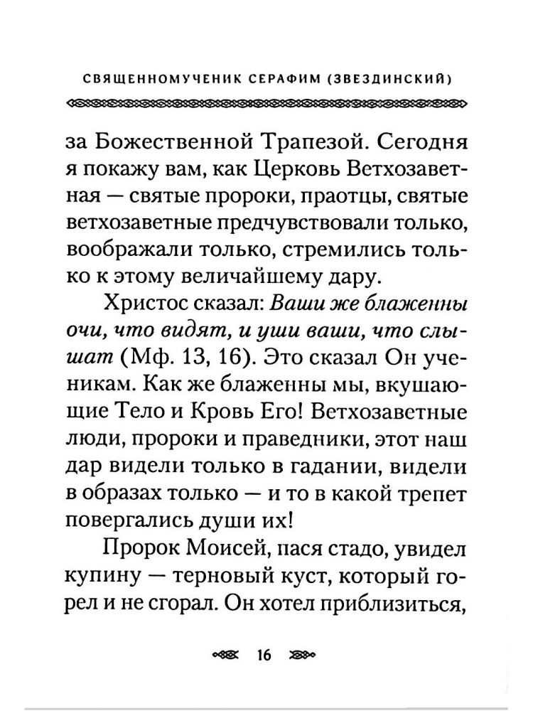 Текст приводится по изданию: Хлеб Небесный: Проповеди о Божественной литургии /сщмч. Серафим (Звездинский); сост. И.Г. Менькова. - М.: ПСТГУ, 2010. (Слово исповедников ХХ века).