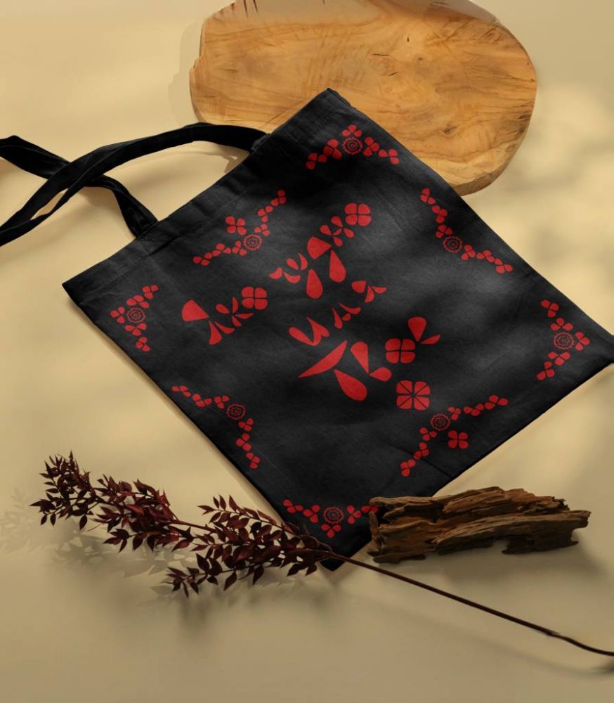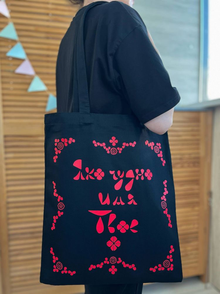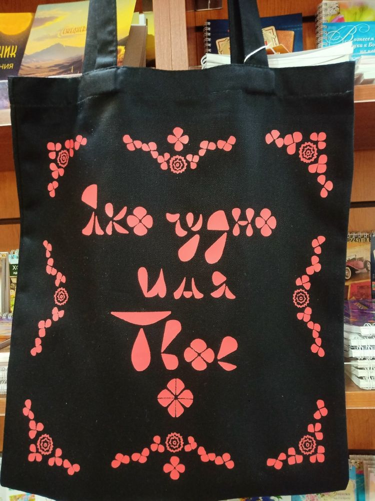 Сумка-шопер холщовая черная с красным принтом «Яко чудно...».