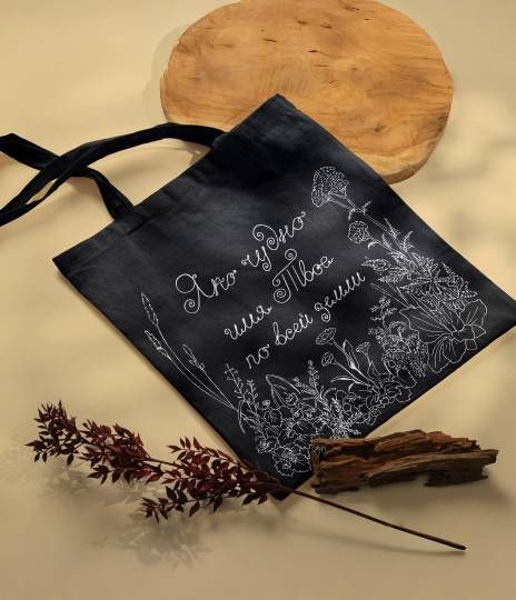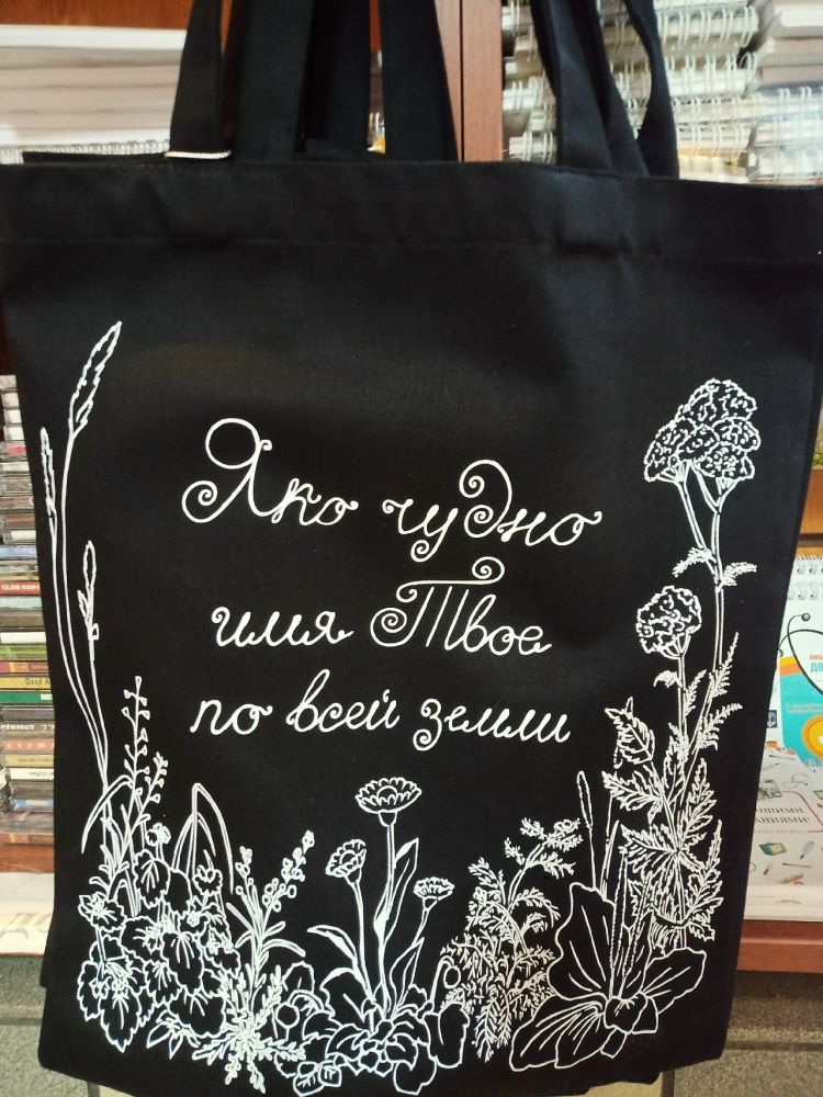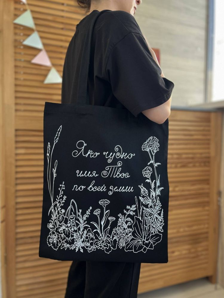 Сумка-шопер холщовая черная с белым принтом «Яко чудно...»