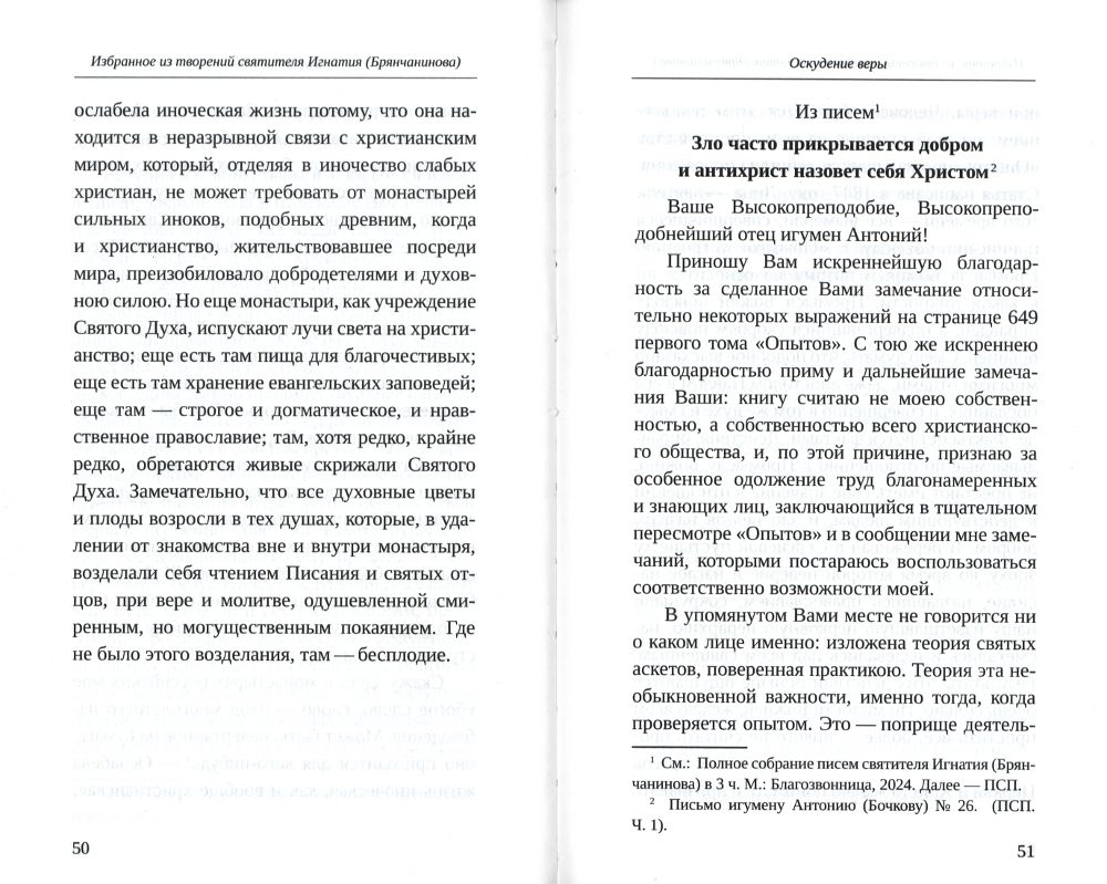 Предлагаемый читателю сборник состоит из статей и писем святителя Игнатия (Брянчанинова) на тему, которая для современных христиан весьма актуальна: последние времена и кончина мира, — благо, об этом в его трудах сказано достаточно. Ценность наставлений святителя состоит в том, что он пишет не столько о внешней, сколько о духовной стороне проблемы: указывает на причины прихода антихриста, на состояние христианства; кто из христиан сможет узнать сына погибели, а кто его примет; какие средства нужны, чтобы избежать прельщения и не отречься от Христа в это поистине тяжкое время, о котором Господь сказал: И если бы не сократились те дни, то не спаслась бы никакая плоть (Мф. 24, 22).