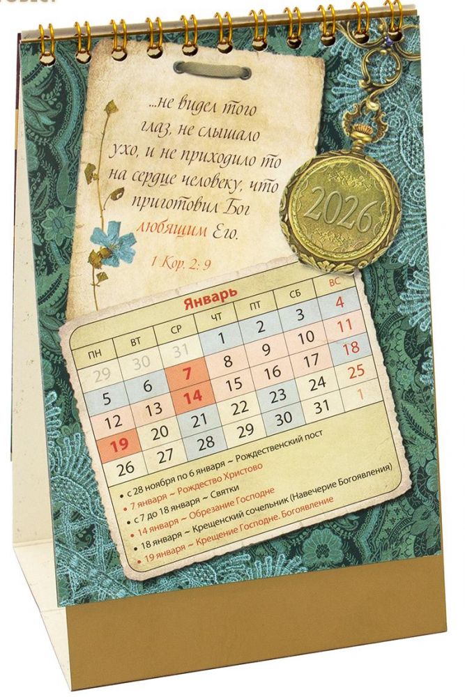 Православный настольный перекидной календарь на 2026 год содержит цитаты о Любви из Священного Писания на каждый месяц.
