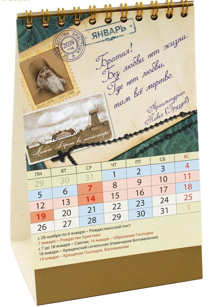 Православный настольный перекидной календарь на 2026 год содержит цитаты о Любви из православных старцев на каждый месяц.