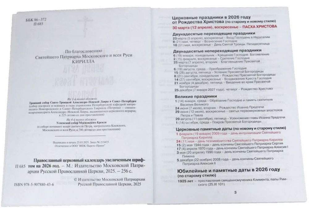 Издательство Московской Патриархии представляет календарно-богослужебные издания на 2026 год.