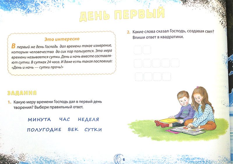 На страницах книги Нины Орловой-Маркграф «Как Бог творил мир» доступным языком рассказывается о том, как Бог за шесть дней сотворил мир. Маленькие читатели могут почувствовать себя сопричастными творчеству — в издании есть раскраски и задания, чтобы лучше запомнить дни творения, а также названия растений и животных.