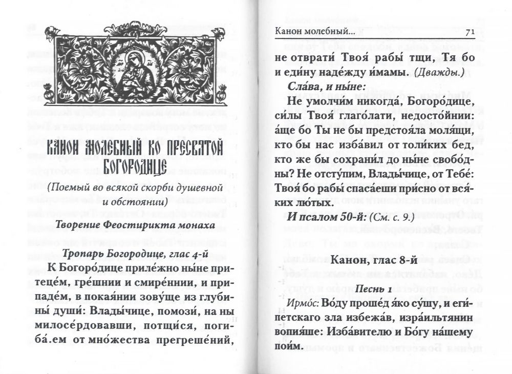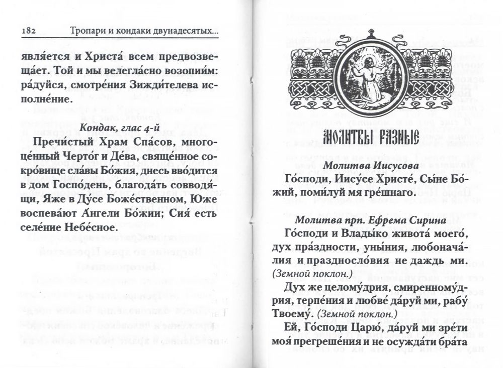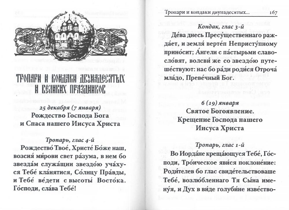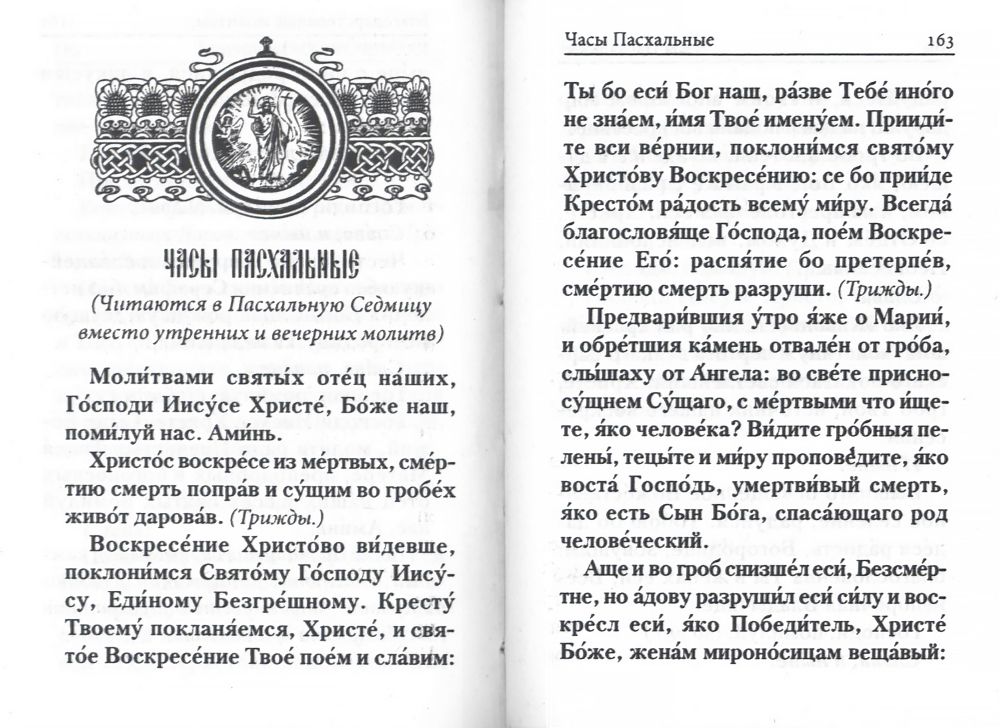 Молитвослов удобного карманного формата, напечатанный гражданским шрифтом, включает в себя молитвы утренние и на сон грядущим, каноны раздельные, последование ко Святому Причащению, благодарственные молитвы по Святом Причащении, часы Пасхальные, а также тропари и кондаки двунадесятых и великих праздников, молитвы разные и об усопших.