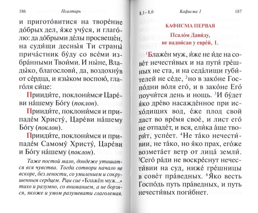 Молитвослова паломника карманного формата, напечатанный в два цвета увеличенным гражданским шрифтом, включает молитвы утренние и на сон грядущим, каноны раздельные, последование ко Святому Причащению, благодарственные молитвы по Святом Причащении, Часы Святой Пасхи, а также молитвы разные, в том числе о путешествующих. Помимо этого, издание содержит Псалтирь пророка и царя Давида.