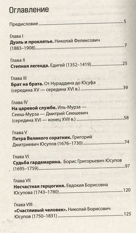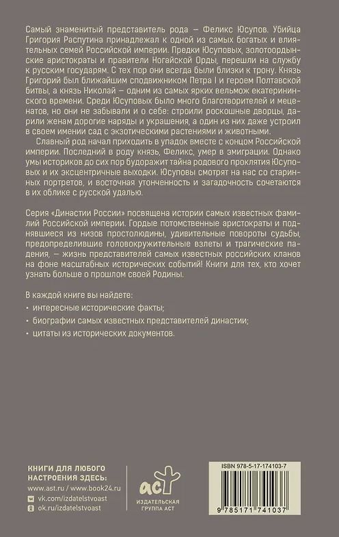 Славный род начал приходить в упадок вместе с концом Российской империи. Последний в роду князь, Феликс, умер в эмиграции. Однако умы историков до сих пор будоражит тайна родового проклятия Юсуповых и их эксцентричные выходки. Юсуповы смотрят на нас со старинных портретов, и восточная утонченность и загадочность сочетаются в их облике с русской удалью.