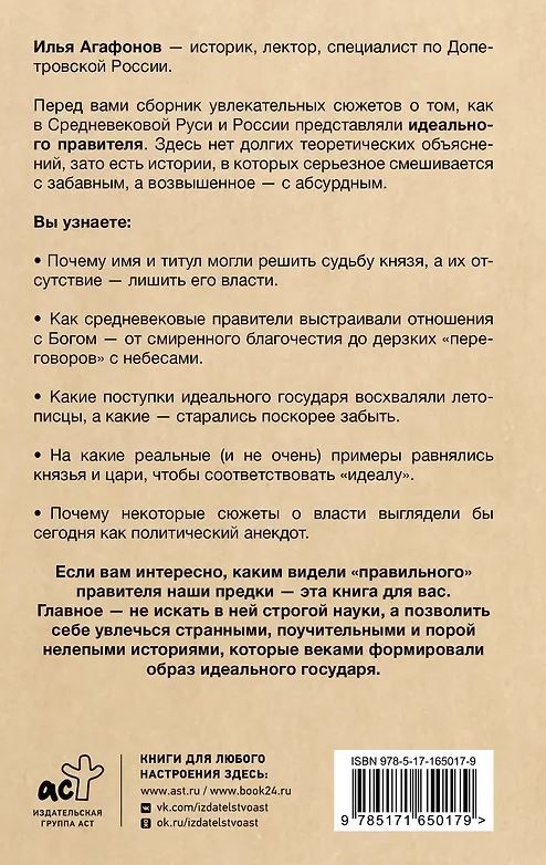 Если вам интересно, каким видели "правильного" правителя наши предки — эта книга для вас. Главное — не искать в ней строгой науки, а позволить себе увлечься странными, поучительными и порой нелепыми историями, которые веками формировали образ идеального государя.
