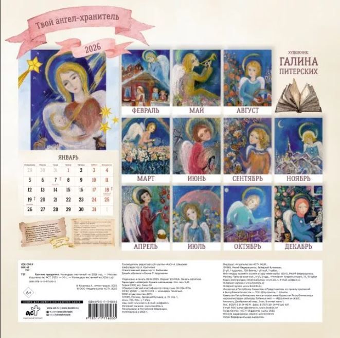 Настенный перекидной календарь на 2026 год с иллюстрациями художницы Галины Питерских станет замечательным подарком для любителей современной живописи и не только.