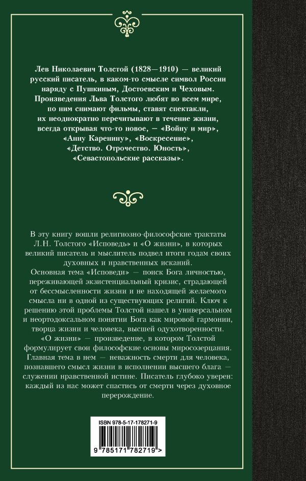 ● В данное издание вошли религиозно-философские трактаты «Исповедь» и «О жизни», подводящие итог годам духовных и нравственных исканий автора.