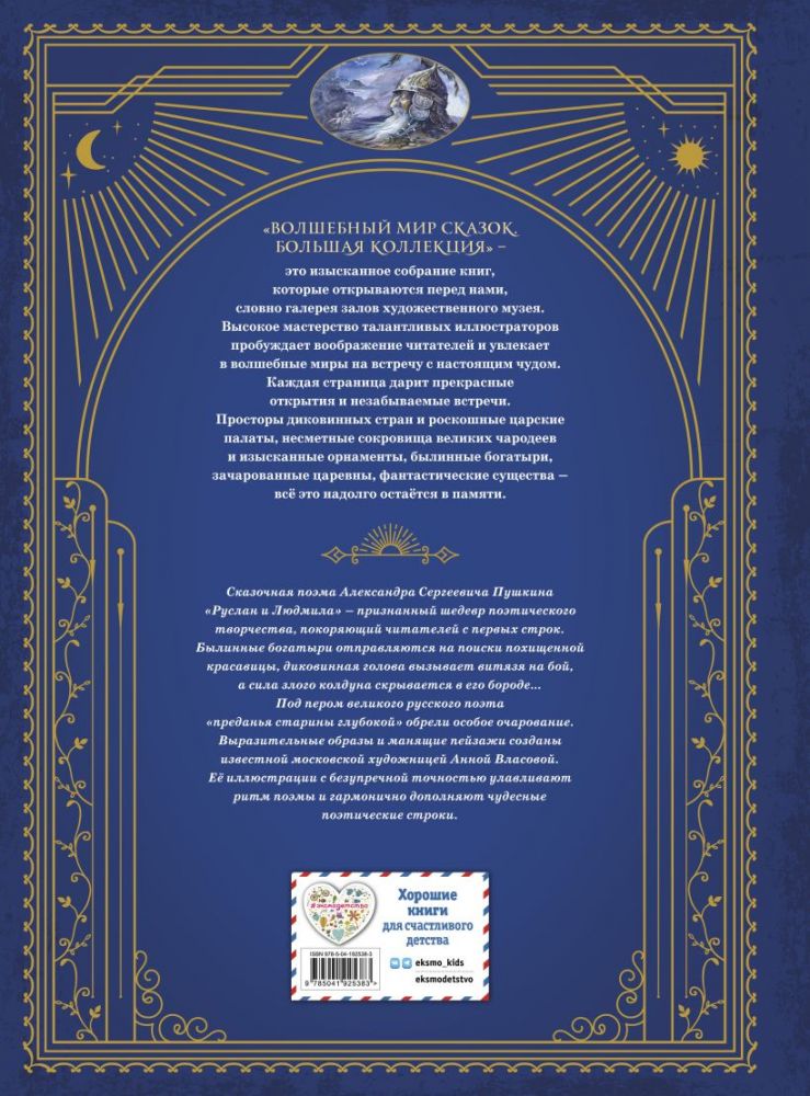 На мистических и прекрасных просторах Древней Руси разворачивается действие знаменитой пушкинской поэмы «Руслан и Людмила». Погрузиться в незабываемую атмосферу читателям помогут изысканные, стилистически точные, красочные иллюстрации известной московской художницы Анны Власовой.
