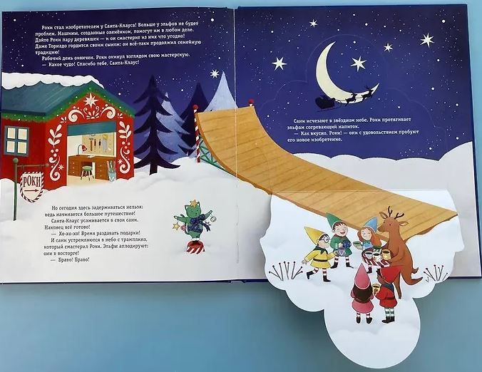 Удобный формат. Обложка с вырубкой в форме звезды. На каждой странице фигурные окошки с картинками и текстом, дополняющие сюжет. Плотная белая бумага. Чёткий крупный шрифт. Яркие полноцветные иллюстрации.