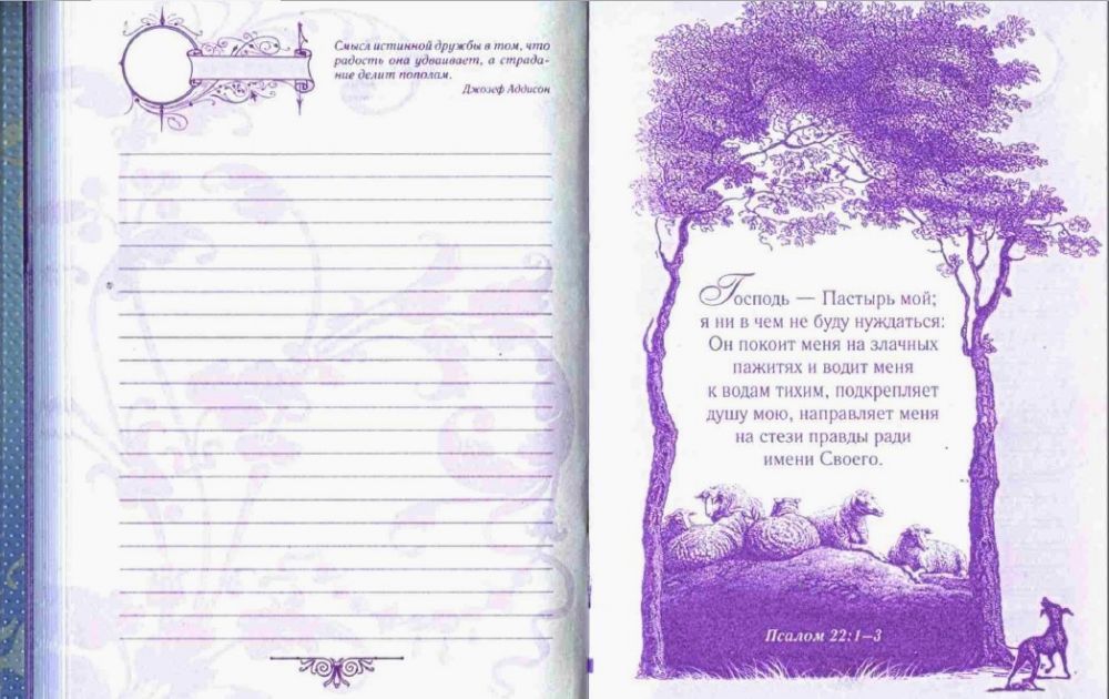 На каждой странице приведены цитаты из Библии и высказывания знаменитых людей.