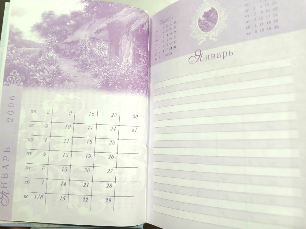 Ежедневник издан в 2005 году, но может использоваться в любом году, поскольку даты на страницах не указаны (они вписываются от руки).