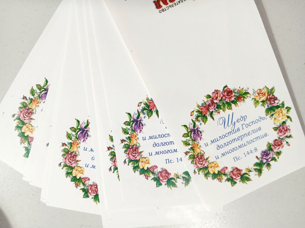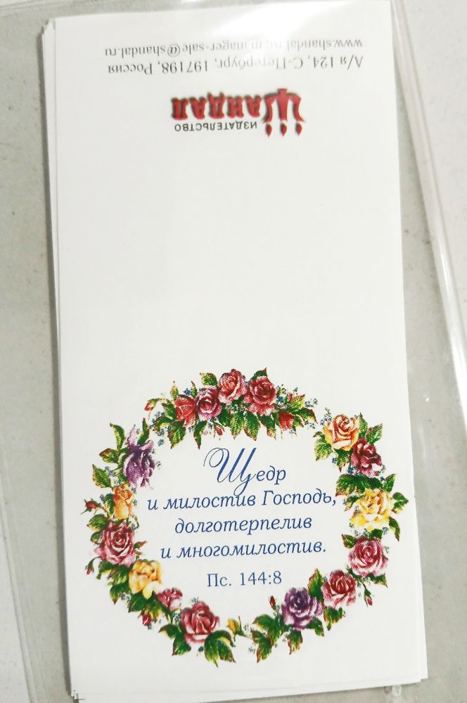 Набор белых мини-открыток "Венок из роз" в пластиковой упаковке.