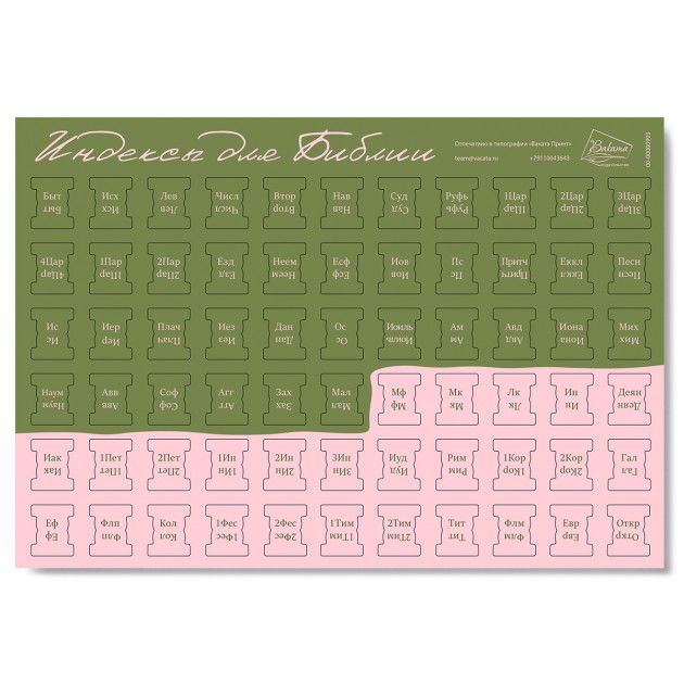Главная / Книги / Сувениры. Изобразительная продукция / Индексы для Библии с прорезкой. Расцветка 10 (зеленокоричнево-розовые) 993