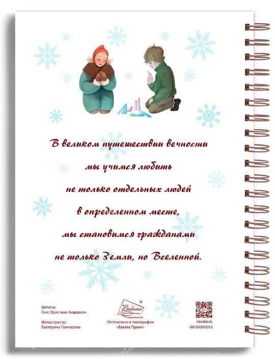 Эта серия блокнотов вдохновлена сказочной повестью датского писателя Ганса Христиана Андерсена «Снежная королева», поэтому особенно понравится детям и подросткам. А также всем любителям знаменитой сказки независимо от возраста. Отправьтесь в великое путешествие к настоящей любви вместе с героями книги. Здесь вы найдете изображения Снежной Королевы, Кая, Герды, других персонажей сказки и цитаты из книги про любовь, смелость и веру.