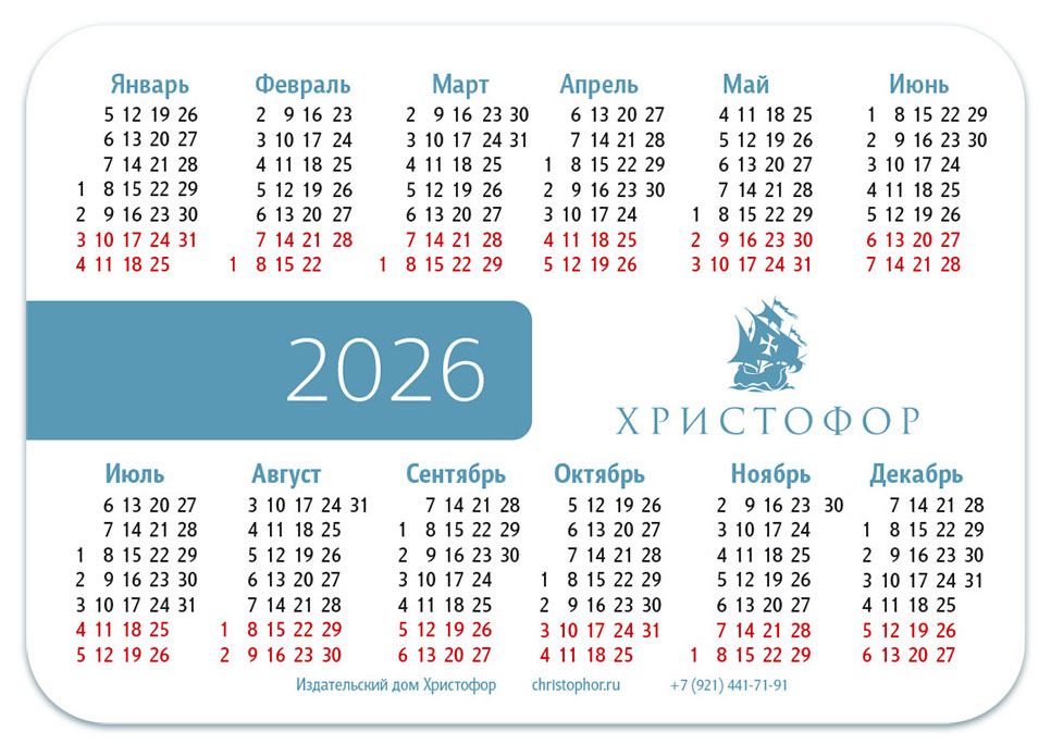 Календарик карманный на 2026 год из плотного картона с двухсторонней ламинацией.
