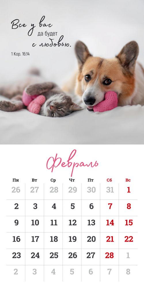 - 12 красочных разворотов с фотографиями милых животных и цитатами из Синодального перевода Библии