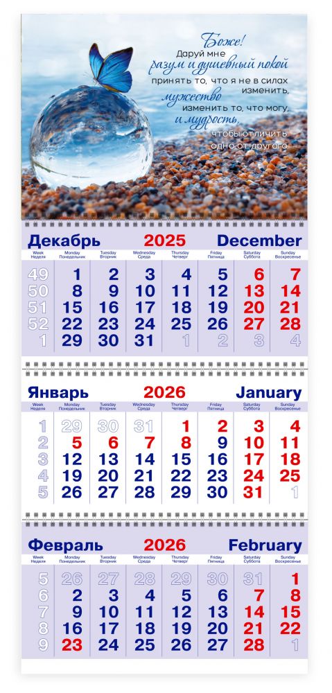 Календарь квартальный на 2026 год «Молитва о душевном покое» (бабочка)