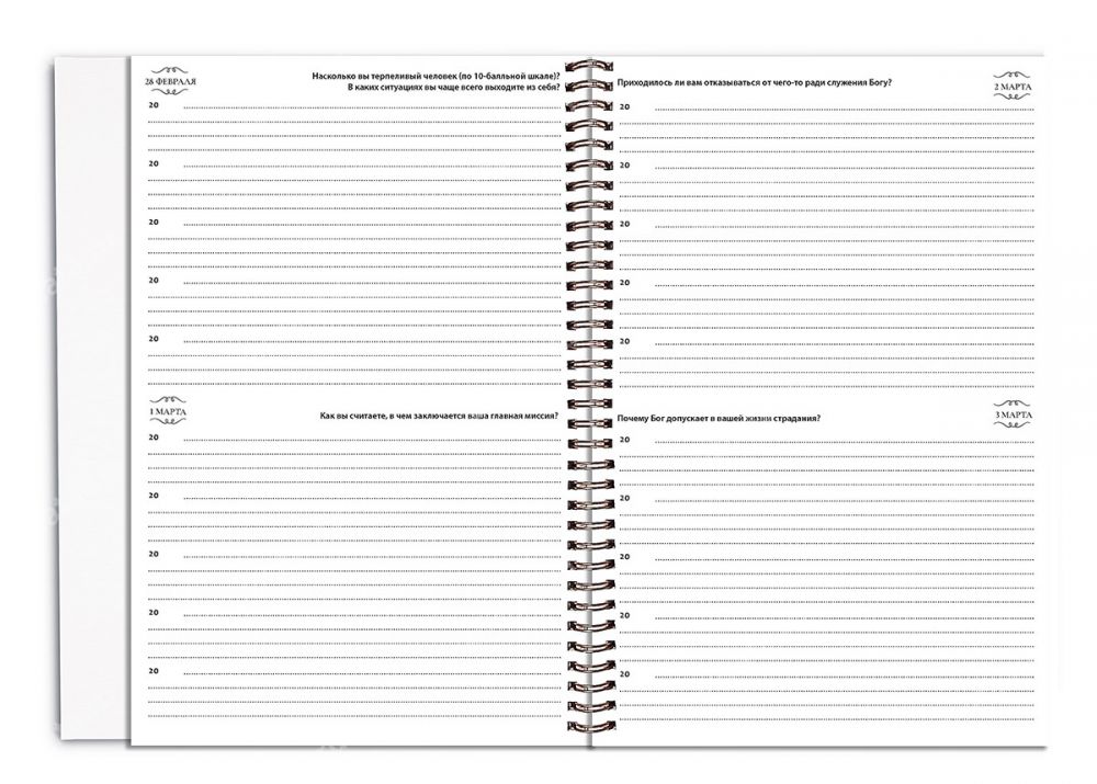 Так называемый дневник-пятибук – это очень популярная в наши дни разновидность дневника. Он рассчитан на пять лет и помогает следить за тем, как с годами меняется жизнь его владельца. Пятибук ведется и для дела, и для удовольствия, чтобы не забыть то, что представляется нам важным. Однако наш христианский пятибук не просто дневник. Каждый день вы отвечаете на вопросы, которые помогают вам заглянуть в свое сердце и в деталях увидеть Божью работу в нем. Например, такие:
