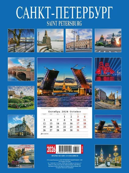 Настенный календарь " Санкт-Петербург" на 2026 год – лучшее, что можно приобрести на память о посещении великого города. Изображения сказочно прекрасной Северной столицы оживят воспоминания и подарят хорошее настроение.