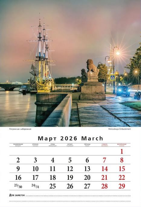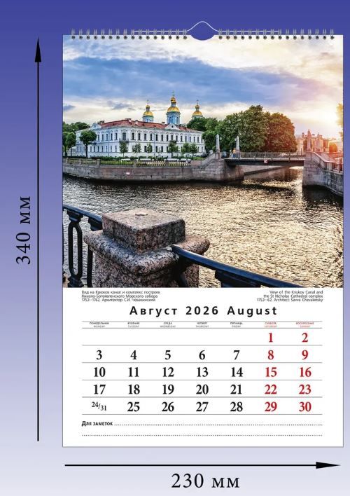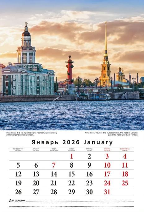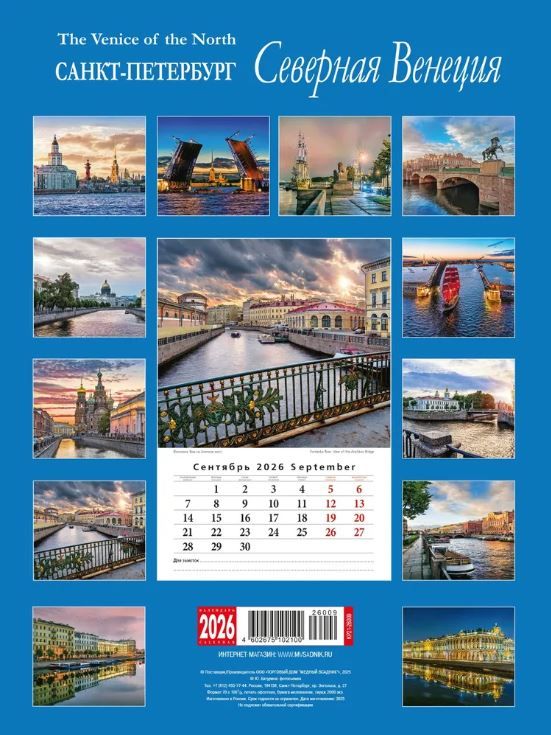 Настенный календарь "Северная Венеция" на 2026 год - лучшее, что можно приобрести на память о посещении Северной столицы. Роскошные виды города пробудят в вас незабываемые воспоминания и подарят хорошее настроение.