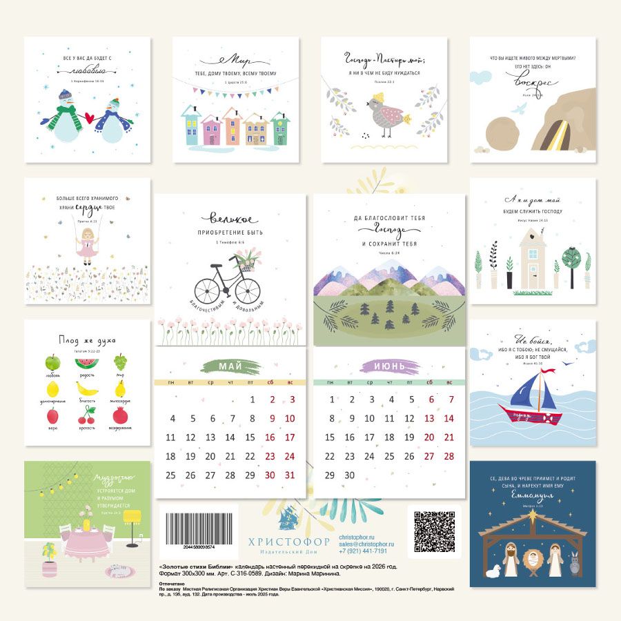 Перекидной настенный календарь «Золотые стихи Библии» на 2026 год