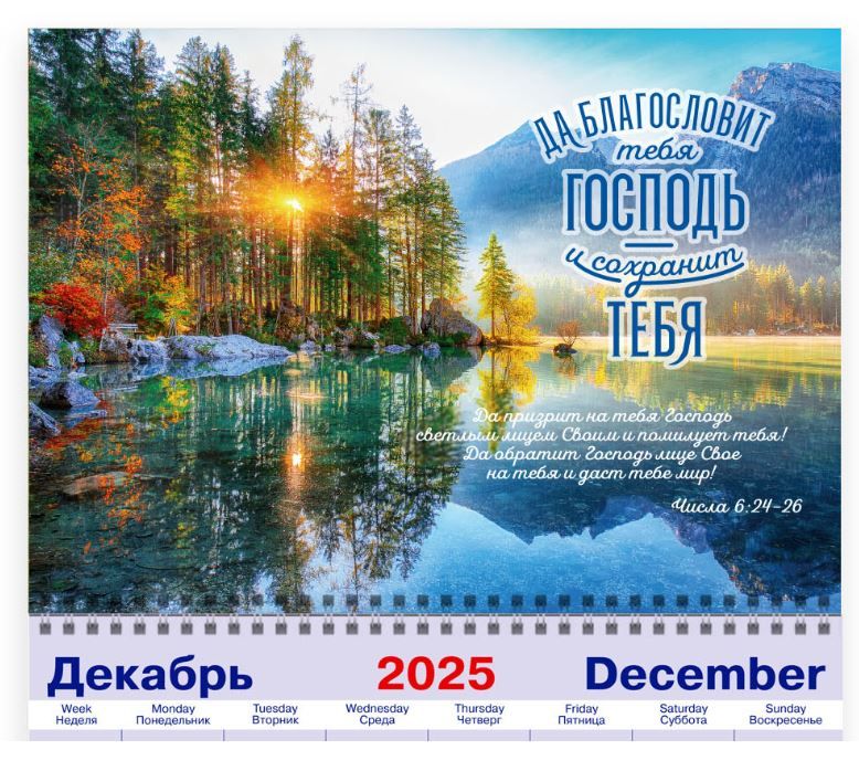 Главная / Книги / Календари / Календарь квартальный на 2026 год «Да благословит тебя Господь и сохранит тебя...» (рассвет на озере